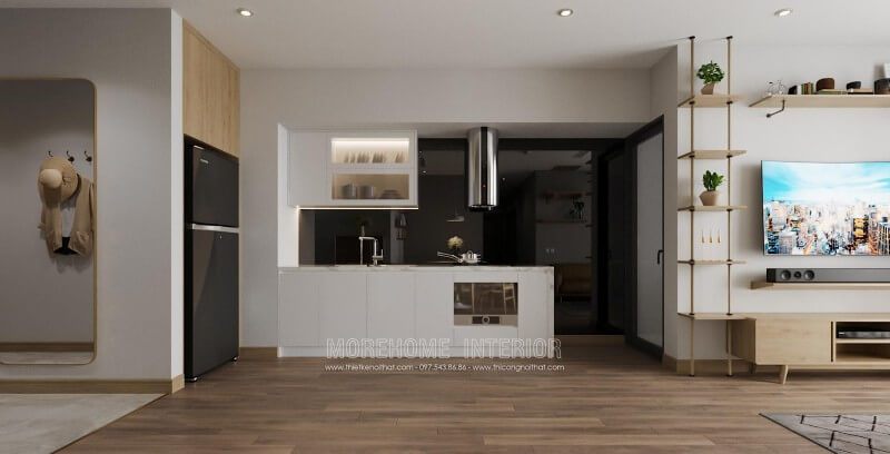 Thiết kế nội thất phòng bếp căn hộ chung cư phong cách hiện đại, sang trọng tạo không gian thoáng và tiện nghi cho người nội trợ