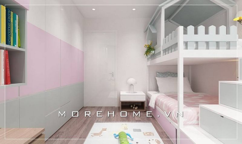 Bố trí nội thất phòng ngủ bé gái tại chung cư nhỏ khoa học, đảm bảo không gian luôn ngăn nắp, gọn gàng