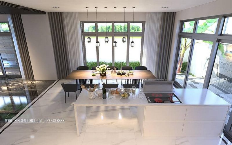 Mẫu cửa kính phòng ăn biệt thự, nhà phố mang phong cách hiện đại và làm tăng độ tiện nghi, sang trọng.