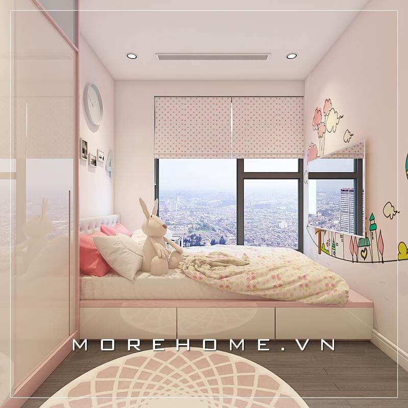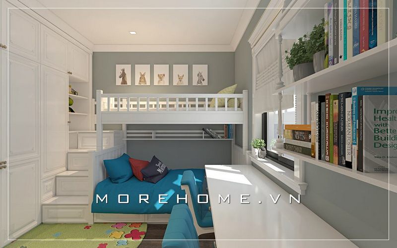 Thiết kế giường ngủ trẻ em gỗ công nghiệp màu trắng ấn tượng tại chung cư hiện đại