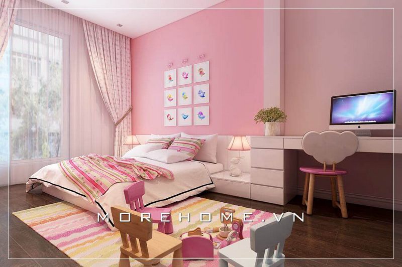 Trang trí phòng ngủ bé gái hiện đại và ấn tượng với giường ngủ gỗ công nghiệp màu trắng tinh tế