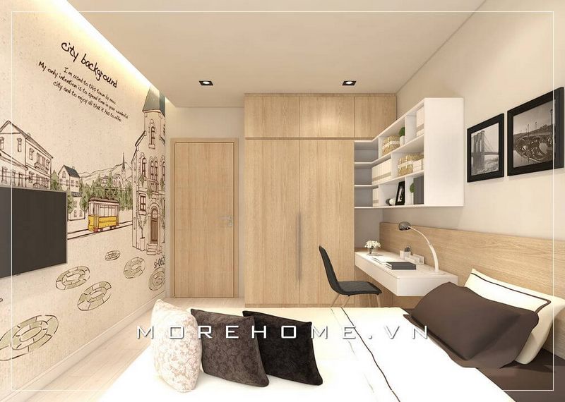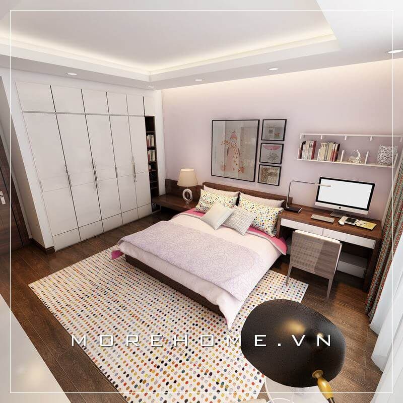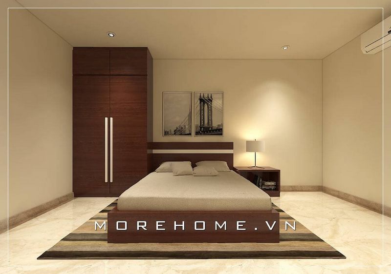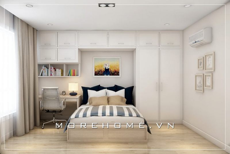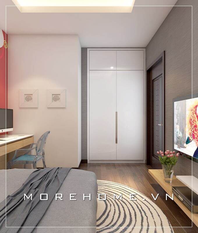 Trang trí nội thất phòng ngủ chung cư nhỏ ấn tượng với chiếc tủ áo 2 cánh hiện đại