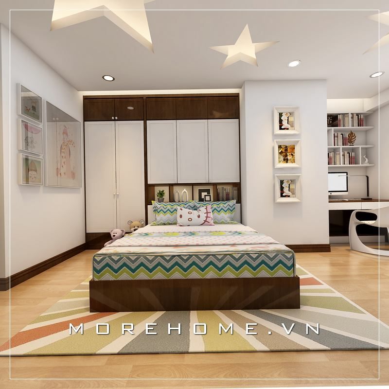 Tủ quần áo trẻ em cánh mở hiện đại, chất liệu gỗ công nghiệp được bố mẹ lựa chọn ở không gian phòng ngủ này