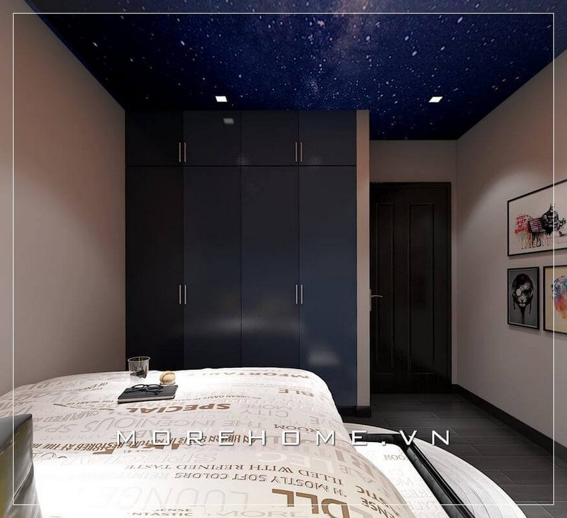 Tủ quần áo cánh mở hiện đại được thiết kế kịch trần tạo cho không gian phòng ngủ thêm rộng thoáng hơn