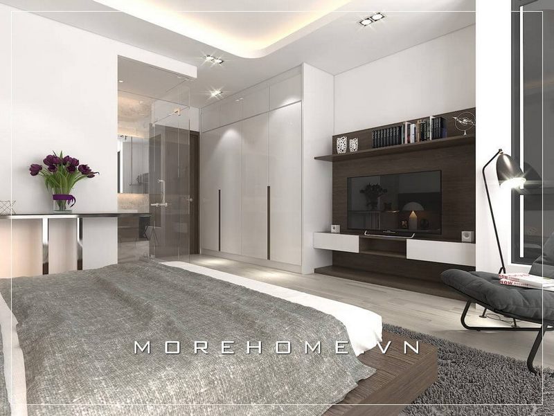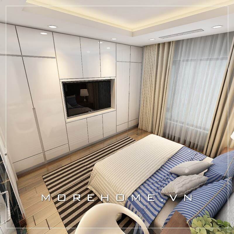 Mẫu tủ quần áo âm tường kịch trần tiết kiệm tối đa được diện tích cho không gian phòng ngủ chung cư hiện đại