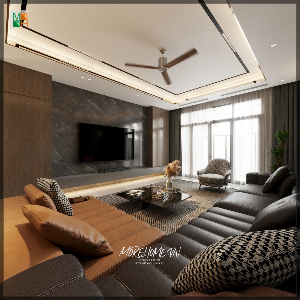 Phòng khách được thiết kế với phong cách hiện đại tiện lợi, giúp gia chủ dễ dàng đón tiếp khách tới chơi và thể hiện được cá tính gu thẩm mỹ riêng của họ.