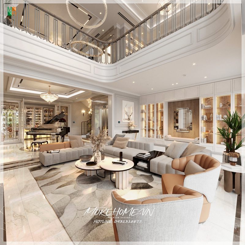 Ngỡ ngàng và ấn tượng bởi thiết kế phòng khách đặc biệt của biệt thự sang trọng, hiện đại và đẹp mắt, mang lại sự độc đáo cho không gian sống của gia đình.