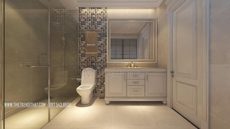 Chiêm ngưỡng mẫu cửa gỗ màu trắng tinh tế, khung gỗ tự nhiên chắc chắn với độ bền cao được gia chủ lựa chọn cho không gian nhà tắm chung cư, biệt thự sang trọng