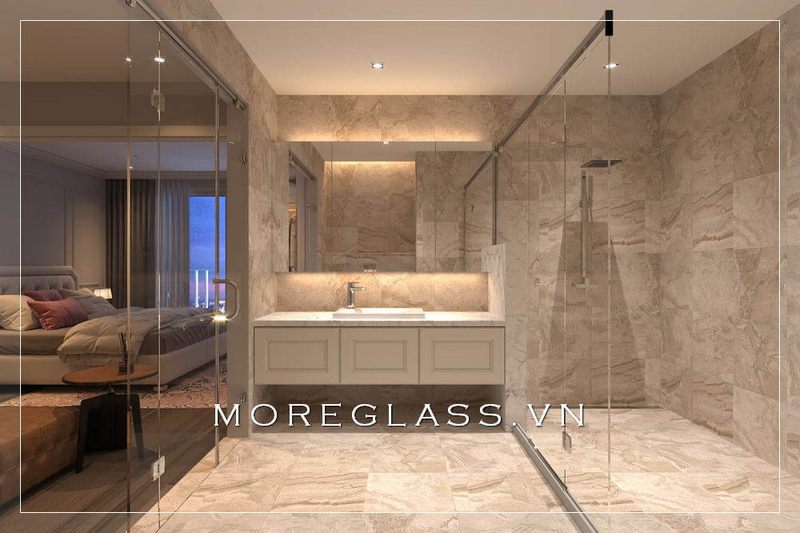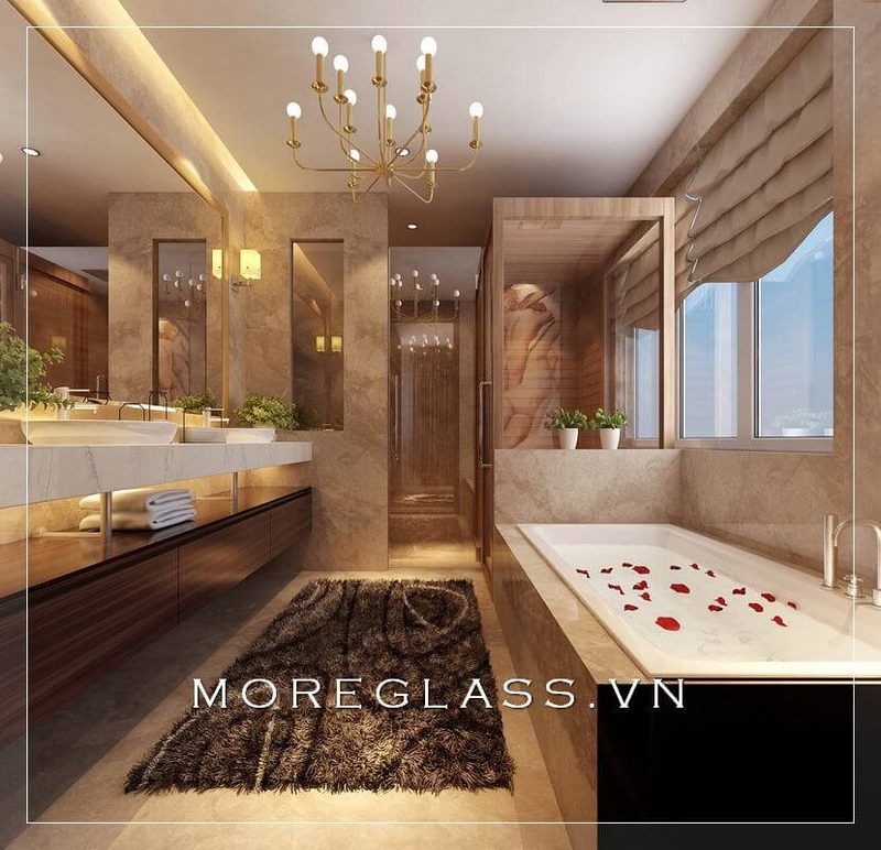 khách hàng Mẫu thiết kế phòng tắm cao cấp của khách sạn sử dụng vách kính cường lực để tạo nên vẻ đẹp sang trọng và lôi cuốn khách hàng.