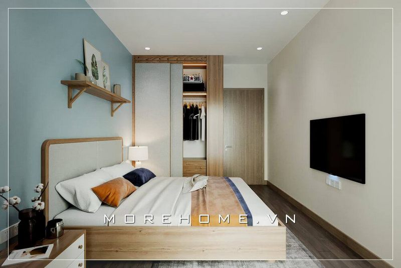 Để tận dụng diện tích sử dụng tối đa trong phòng ngủ nhỏ, nên lược bớt những vật dụng không cần thiết để giúp căn phòng trở nên thông thoáng hơn. Sử dụng tủ cách lùa kịch trần và tận dụng các góc khuất để đặt bàn làm việc giúp căn phòng đầy đủ tiện nghi mà không làm bối rối mắt.