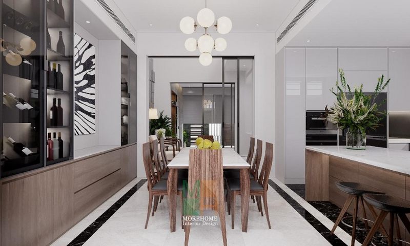 Thiết kế nội thất phòng ăn hiện đại, đơn giản và tiện lợi cho cư dân căn hộ.
