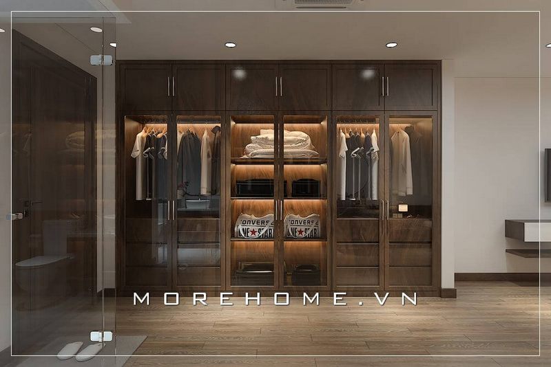 . Tủ quần áo cánh kính hiện đại với gam màu nâu sang trọng tạo nên vẻ đẹp ấm áp và có khả năng thu hút mắt.